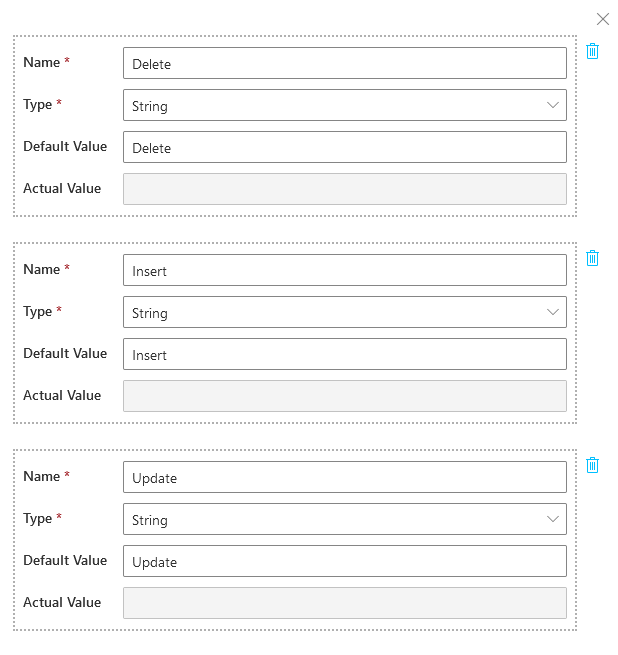 The first thing is to set some parameters to act as constants for the execute type. This allows a change in one place of any of the values that may be used multiple time in the workflow.