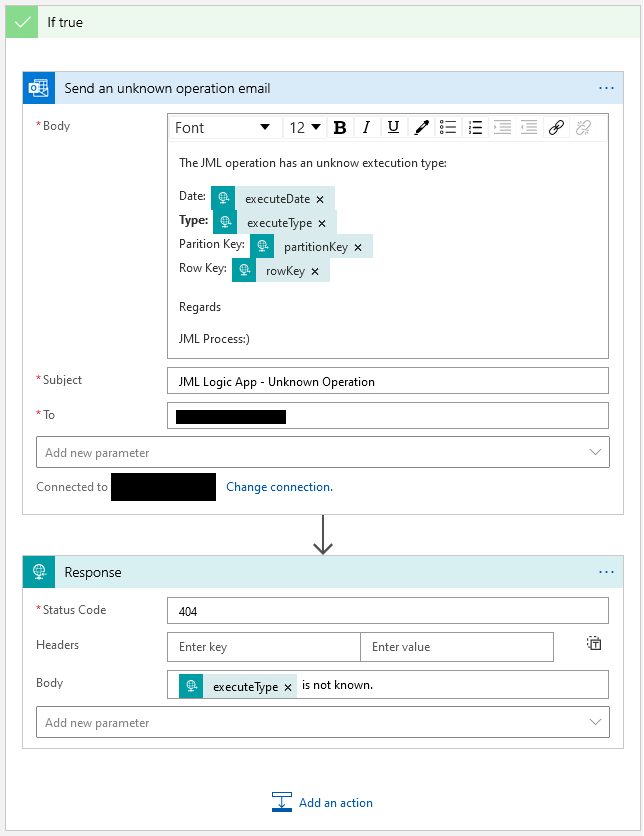 If the execute type is of a known type lets process according to that action. As this is the Joiner part of the JML processor the execute type will be Insert, so this will trigger the JML-Joiner Logic App workflow and depending on success pass back a 200 HTTP response or 400 if an error has occurred.